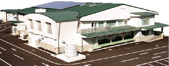 この新しい学校給食センターは、作業区域の明確化を図り、衛生管理面に十分配慮したフルドライ方式の調理場になっており1日4,500食の調理能力を有しております。また、太陽光発電システム・深夜電力利用空調システム・オゾン方式消毒システム、さらには残菜利用堆肥システムなどを配した環境にやさしい時代のニーズに即応した施設となっております。