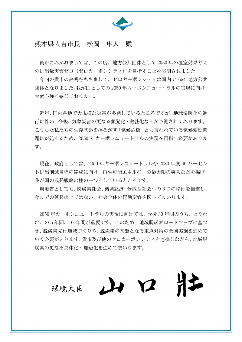 人吉市ゼロカーボンシティ宣言文