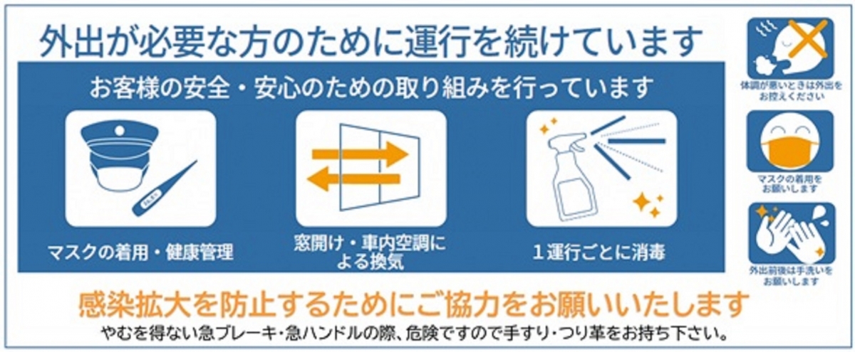 安心して路線バスをご利用いただくとともに、みなさまが安全に、気持ちよくご利用いただけるよう、取り組みについてご理解とご協力をお願いします。