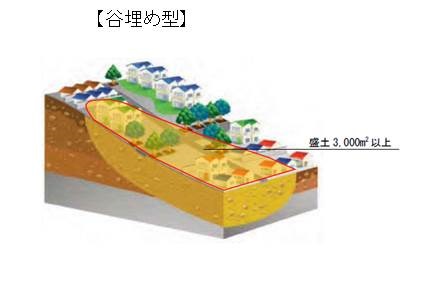 谷を埋め立てた宅地で盛土の面積が3,000平方メートル 以上の盛土造成地