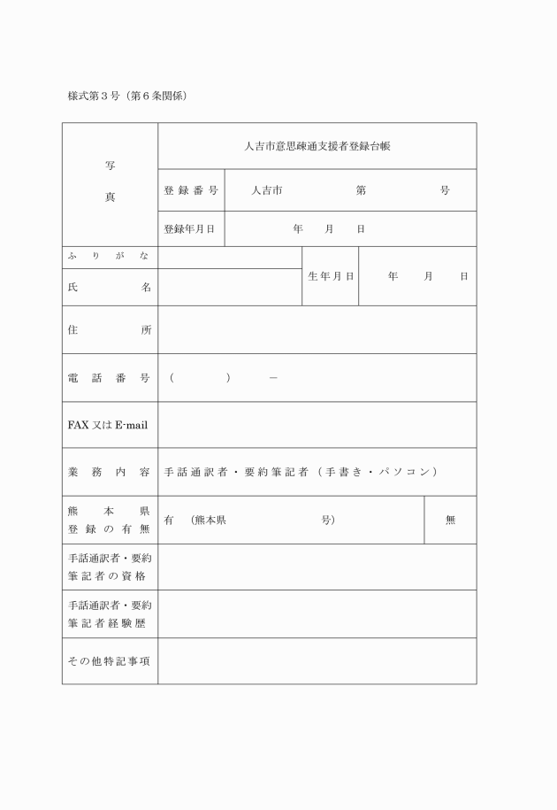 5 意思疎通支援者は、登録事項に変更があるときは、速やかに人吉市意思疎通支援者登録事項変更届(様式第6号)を、所長に提出しなければならない。