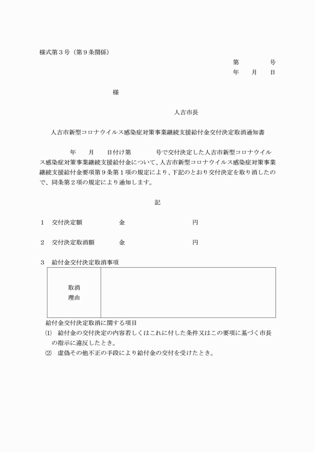 ○人吉市新型コロナウイルス感染症対策事業継続支援給付金要項