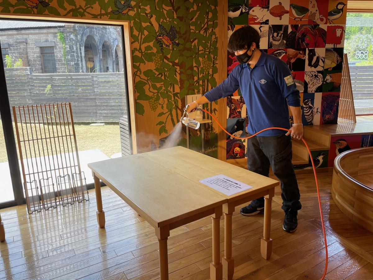 人吉鉄道ミュージアムでは、より安全にご利用いただくために、館内の抗菌・抗ウイルスコーティングを令和2年豪雨災害復興支援プロジェクトにより、施工していただきました。
