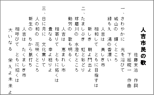人吉は 美しき市 相和して ともに目指すは 新しき 朝よ門出よ