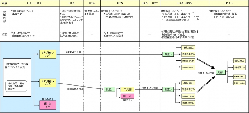平成23年度にはこれらを通して確立された新しい補助金制度を策定し、平成24年度以降、新制度に基づいた運用を行っています。