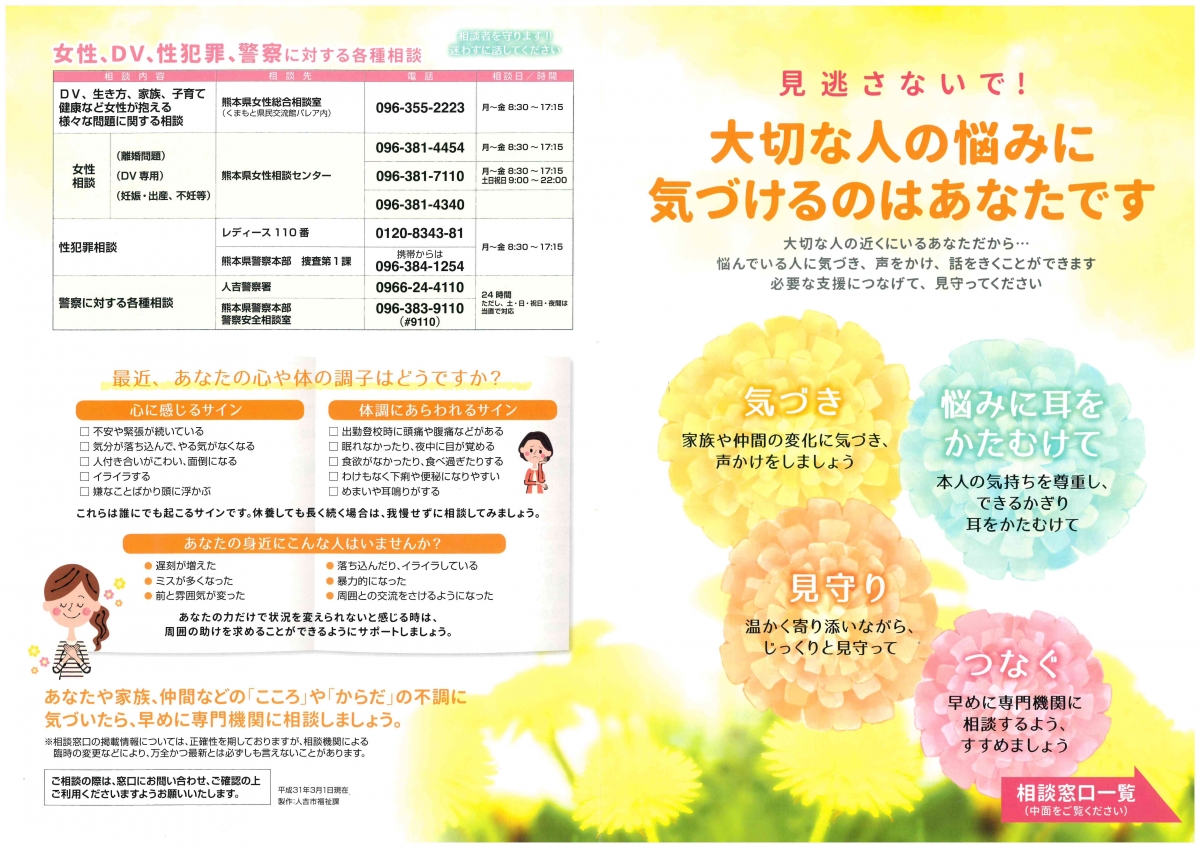 生活のこと、からだのこと、こころのこと、さまざまな悩みへの相談窓口があります。